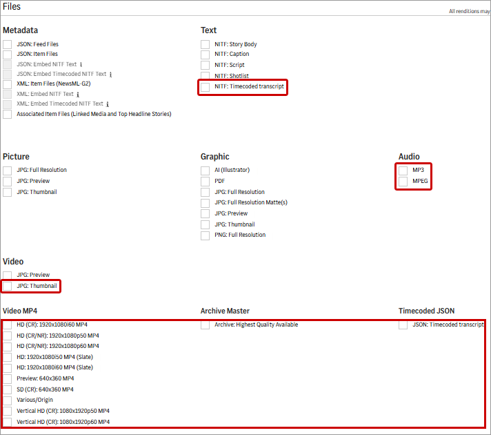 | txt-nitf-transcript | Timecoded video transcript in the NITF format | NITF: Timecoded transcript (under Text) |